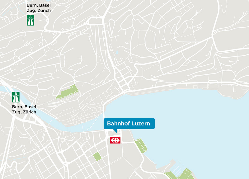 Auto: Parken Sie im Bahnhofparking P1+P2 oder im Parkhaus Bahnhof.